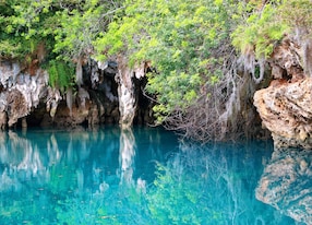 hidden cave with cryustal clear turquoise water