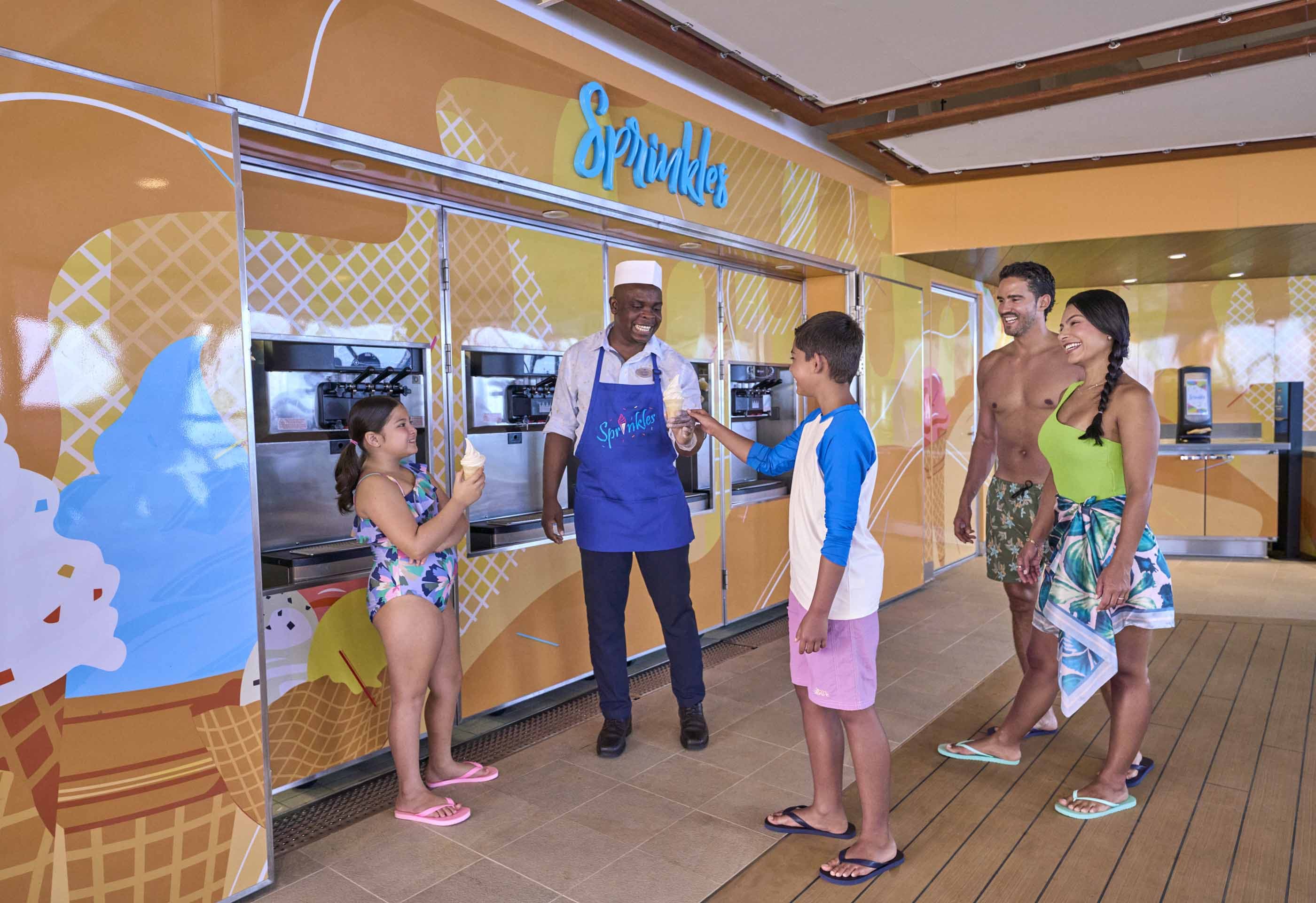 Open the floodgates on fun at two sprawling Splashaway Bay℠ aquaparks where you’ll always find giggles by the gallon. There are plenty of flowing fountains and sun-soaked slides to keep kids running back for more onboard. And the coolest aqua park at sea breaks out beyond the deck at Perfect Day at CocoCay, with double drench buckets, water cannons, waterfalls and more.
